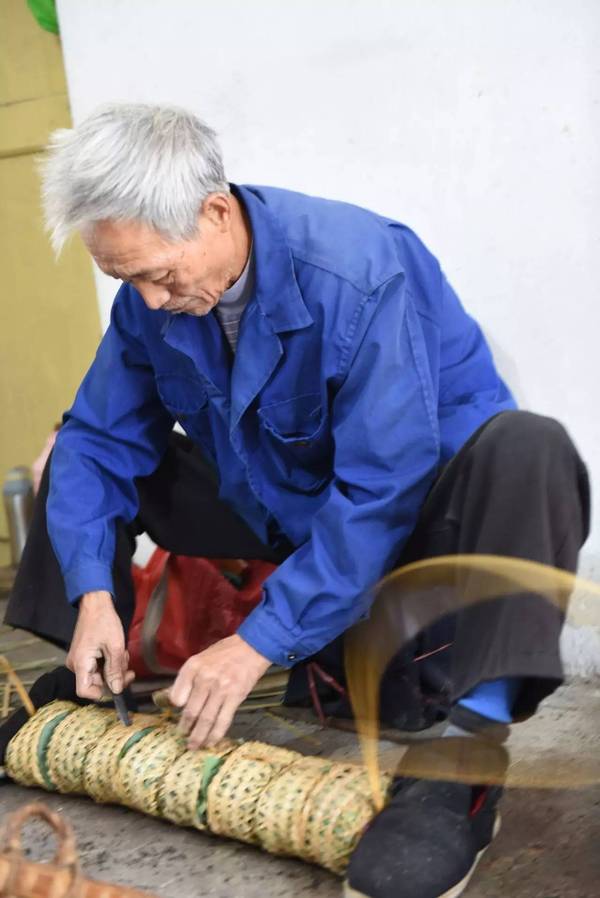 厂里的郑春武老师傅在包装安茶的职位上已经做了25年了,他一直在做这件事,很娴熟的将竹条拉紧抖落,将8个茶篓紧紧捆好。半斤装的等级高的安茶,每篓半斤,每8篓编成一条,每7条再捆成一件,一件就是28斤。而一斤装的等级低的安茶,每篓1斤,6篓一条,6条成一件,一件就是36斤了。